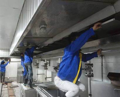 排烟横管道清洗后管道内壁90%以上无块状油垢。 净化器清清洗完后能见底漆无块状油垢。 宾馆饭店等单位的大型油烟机的排烟管道使用一段时间后,油烟管道的表面会沉积一层油垢,这样会影响烟道的使用,使烟流不易排出,如果不及时进行清洗,非常容易引发火灾,所以要定时进行油烟管道清洗,以免发生危险。