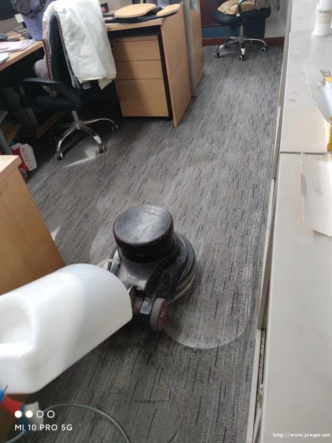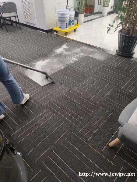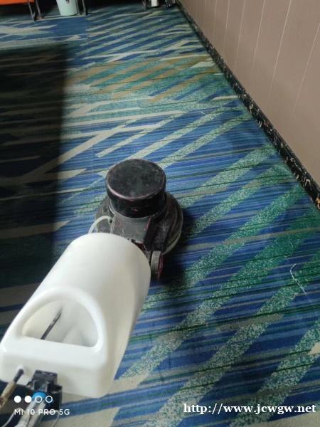 4、用“Z”字型均匀清洗地毯,清洗同时使用大功率吸水机将地毯中的水渍吸出。
