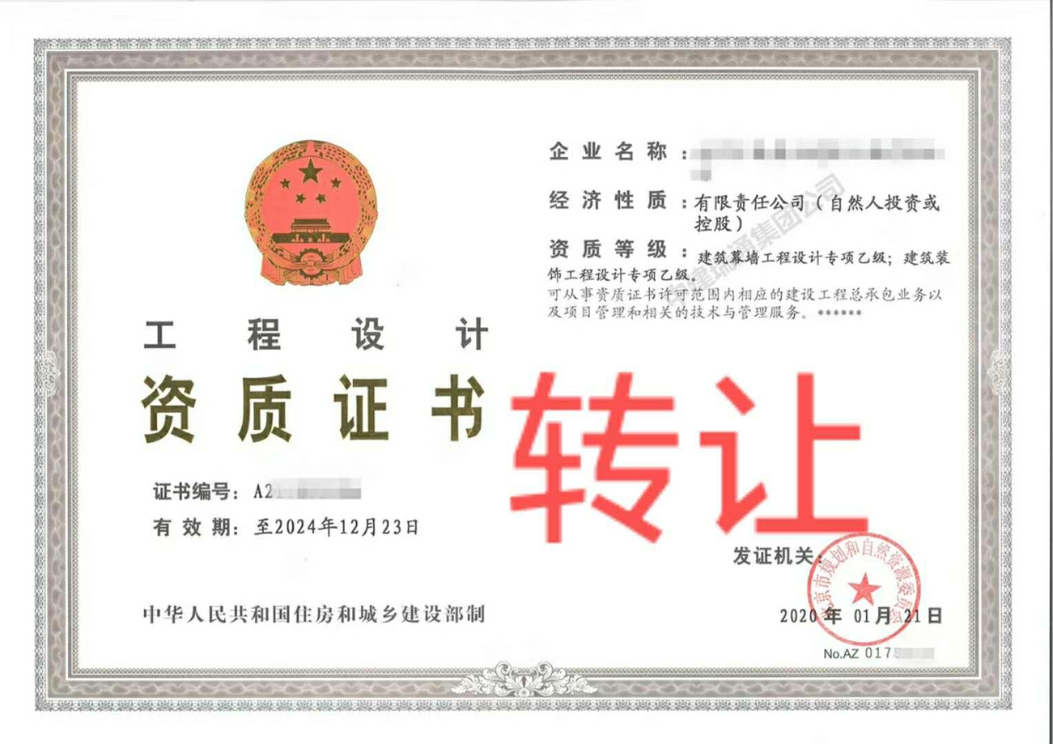 装饰设计甲级资质公司转让