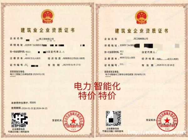 北京电力工程施工总承包申请要求: 1:企业资产:净资产800万元以上 2:机电工程专业注册建造师不少于5人 3:技术负责人具有5年以上从事工程施工技术管理工作经历,且具有电力工程相关专业中级以上职称或机电工程专业注册建造师执业资格;电力工程相关专业中级以上职称人员不少于10人 4:持有岗位证书的施工**场管理人员不少于15人,且施工员、质量员、安全员、资料员等人员齐全 5:经考核或培训合格的中级工以上技术工人不少于30人 6:技术负责人(或注册建造师)主持完成过本类别工程业绩不少于2项 电力转让具体**程: 1、寻找符合目标的电力转让公司 电力转让的话,我们首先就得去寻找拥有电力,并且想要转让的公司。关于寻找转让公司,主要有三个途径:1是亲戚朋友介绍;2是通过网上查询;3是经由中介机构办理。 2、了解转让并购公司情况 在找到想要转让的公司后,我们还需要了解具体情况,以便做出正确选择。其中,由于电力只是一个大类,还包括了电力施工和电力设计,以及电力承装(修、试)。所以,在电力转让过程中,更需要对公司拥有的电力做个深入了解。此外,电力转让是连同公司一起收购,转让公司的**情况也是我们需要留意的。 3、沟通电力转让费用 在了解了转让公司的情况后,我们就会有几家合适的公司选择。这样的话,我们就需要与几家公司沟通,以便了解费用情况。而在详细的了解收费后,才能在几家公司中做出合适的选择。 4、确定电力转让公司 通过对转让公司情况的了解,并选择出了收费合理的一家后,电力转让也就确定下来。而在此过程中,就可以正式办理公司转让,完成对电力公司的收购。 5、完成证书变更 在收购了电力的公司后,还需要完成各项证书的变更,之后才能开展正常经营。而在这之中,重要的就是电力证书的变更,变更后才算完成转让程序。 办理或转让以下: 《市政总包》 《建筑总包》 《机电总包》 《石油**总包》 《装修装饰》 《劳务分包》 《消防设施》 《电子智能化》 《建筑幕墙》 《防水保温》 《环保工程》 《机电安装专包》 《钢结构》 《模板脚手架》 《特种工程》 《古建筑》 《地基基础》 《通信工程》 《电力工程总包》 《输变电》 《承装修试》 《桥梁》 《隧道》 《水利水电总包》 解除建筑异常,建委动态核查,提供建造师,工程师,技工等人员资格证书;(建筑新办,转让,升级,延期)安许延期;