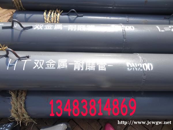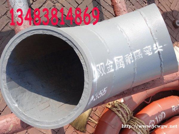 双金属复合耐磨弯头产品生产工艺:一、复合工艺双金属复合耐磨管采取消失模真空吸铸复合工艺复检制造,这种工艺是国际较先进的金属复合工艺,属于半精铸技术,和砂型铸造相比大大提高了表面精度,而且不会出现冲砂夹砂现象,由于采取了真空浇注,也不会出现气孔等缺陷。由于该工艺制模尺寸精度高,从而铸造出的复合耐磨管的复合耐磨层厚度均匀一致,避免了一般铸造方法由于脱模、修型等工艺而产生壁厚不均匀的现象,而且其组织均匀,性能稳定。同时该工艺可以对任何大小直径的直管和异形管进行复合,对弯管、三通、四通、锥形管、变径管、非等壁厚管、偏心管都可以做到整体复合,减少了运动阻力,降低了物料输送中的运行成本。二、内壁材质铸造我公司在引进美国先进配方的基础上,经过有关专家的研究和多次试验,确定将耐磨钢作为双金属复合耐磨管道的内壁,根据长期生产制作,在多次试验中得出了最合理的经验,使产品更加成熟、质量更加稳定、综合性能更好。其中加入一定量的稀土元素改善钢的合金质量,起细化晶粒作用,在表面形成保护膜;加入一定量Mo使合金在高温下,具有一定抗氧化作用,增加使用寿命;加入一定量的碳化硼,可将硬度控制在HRC45~65的范围之间,同时解决了耐磨钢的硬度和可焊性之间的矛盾,具有较高的耐磨性,等等。双金属复合耐磨产品适用范围:电力行业:原煤系统料仓、料斗、漏斗、送粉管道,煤炭行业:选煤厂重矿选煤管路,湿法输煤系统,采矿中的泥沙回填矿山行业:矿山充填,精矿粉输送,尾矿输送管道钢铁行业:焦粒输送管道,磨煤机管道、分离器、弯头、锥体、分离挡板水泥工业:煤粉输送。矿粉输送机械行业:电厂制粉、除尘、排灰系统设备内衬,钢厂除尘设备内衬。