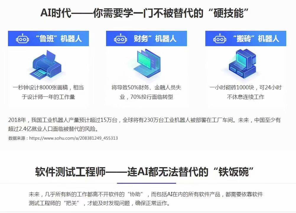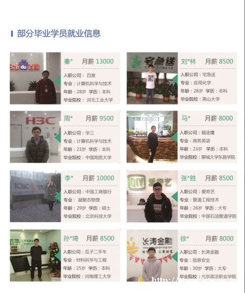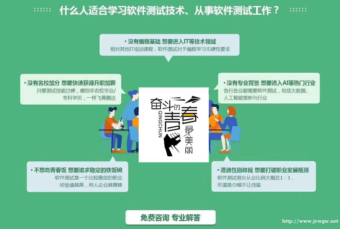 就像来我们这边学软件测试的小伙伴们,其中就有很多是从其他行业转行过来学的往届生,他们在来之前几乎都处于迷茫的状态,不知道找什么样的工作,经过我们咨询师的耐心分析,找到了职场方向,并且稳定就业。工作后的他们都很后悔,为什么这么晚知道我们,为什么没能早点入行!如果你跟他们一样处于迷茫的状态,可以随时电话聊聊!