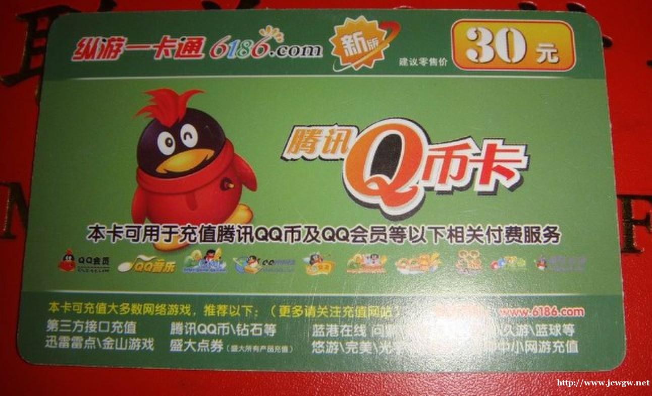 超低价2折批发《全国通用》Q币,面值20元.价格每张4元 面值30元.价格每张6元 面值60元.价格每张12元 面值100元.价格每张20元 质量保证,欢迎选购!