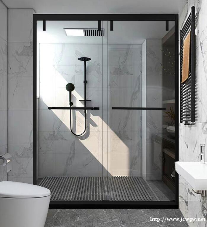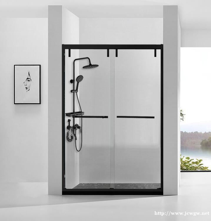 淋浴房隔断 一字形黑色不锈钢极窄推拉门定制卫生间干湿分离玻璃