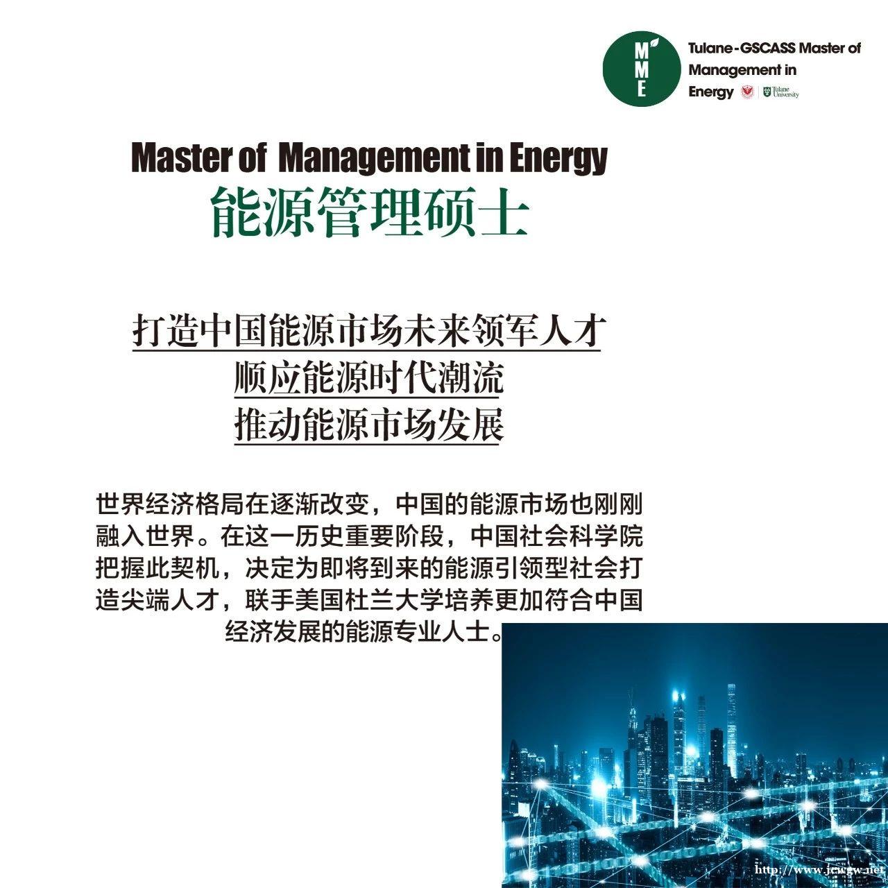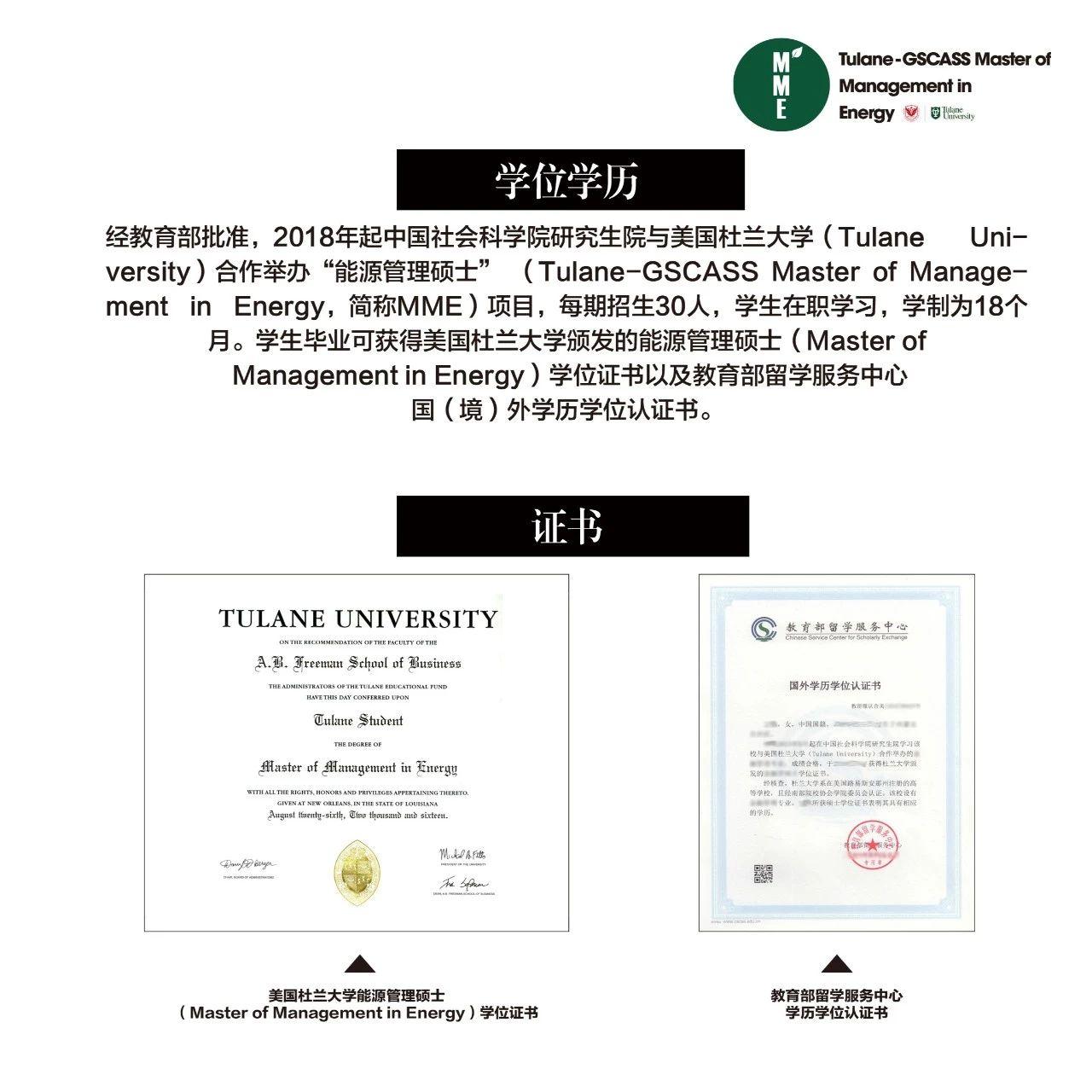 中国社科院中外合作办学能源管理硕士,是中国社科院与美国杜兰大学合办的金融方向的能源管理硕士课程,2018年经教育部批准办学开始招生,课程集合了中美双方院校的顶级师资,院校自主招生,每期招生30人,学员在职学习,学制为18个月,与一月统考双证具有同等效力,入学无需参加全国统考,所获硕士双证国家承认,可用于考公务员、晋升职称、继续读博、享受积分落户等。